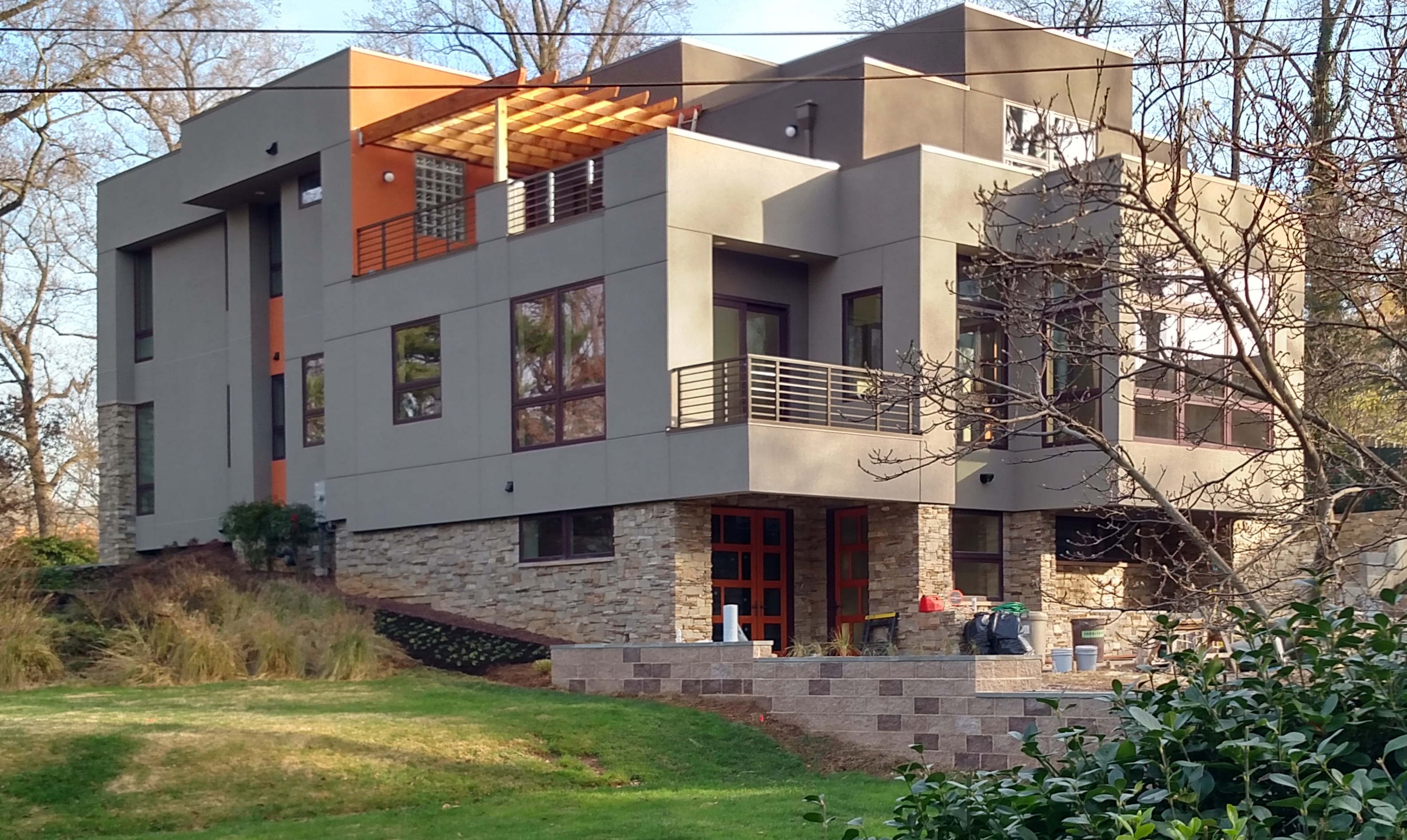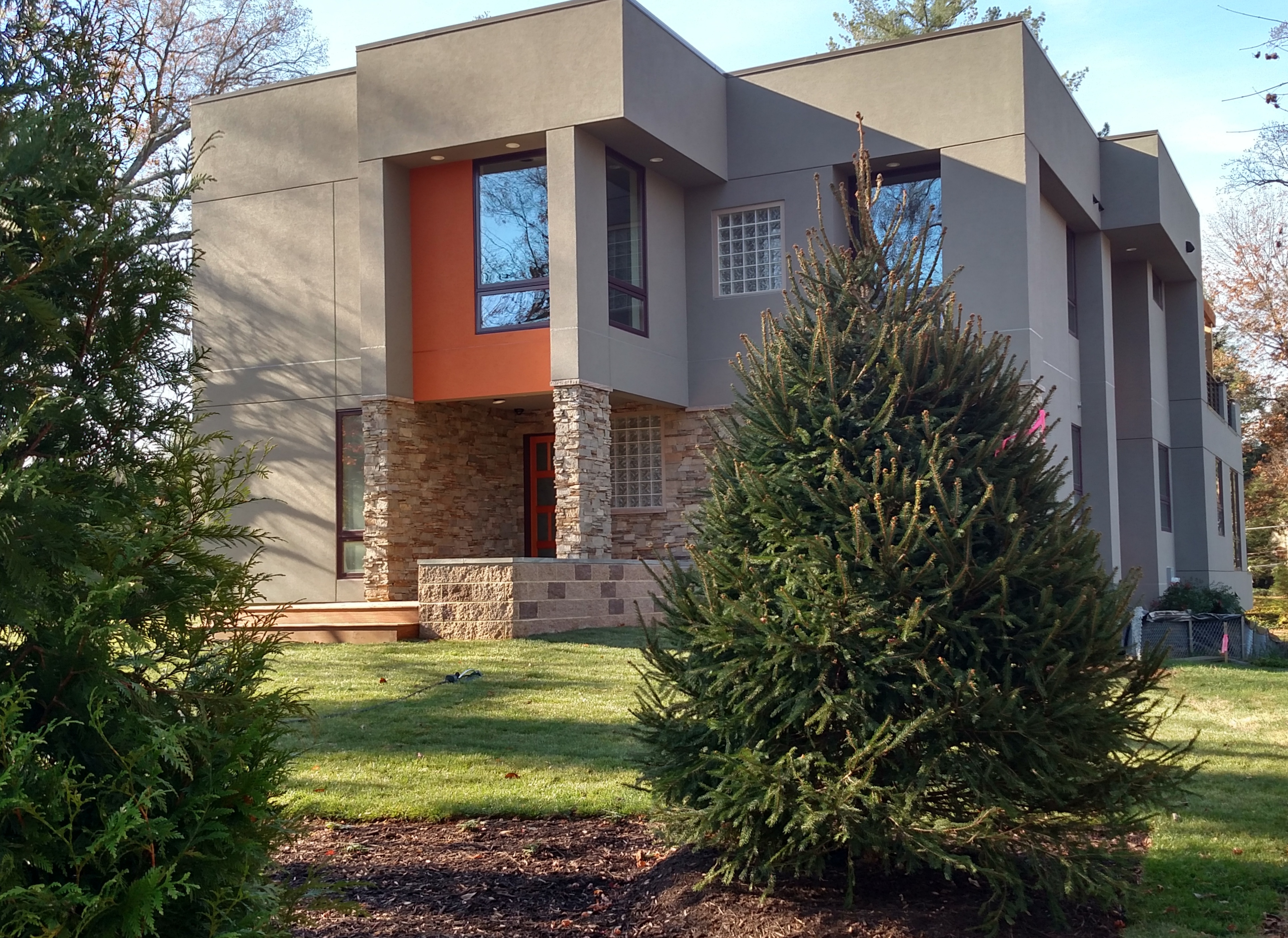 Here are earlier pictures from November 2015: Much still is left to do, but each day brings exciting progress. The wonderful modern wood and glass front door (and separate in-law-suite door) were just installed.