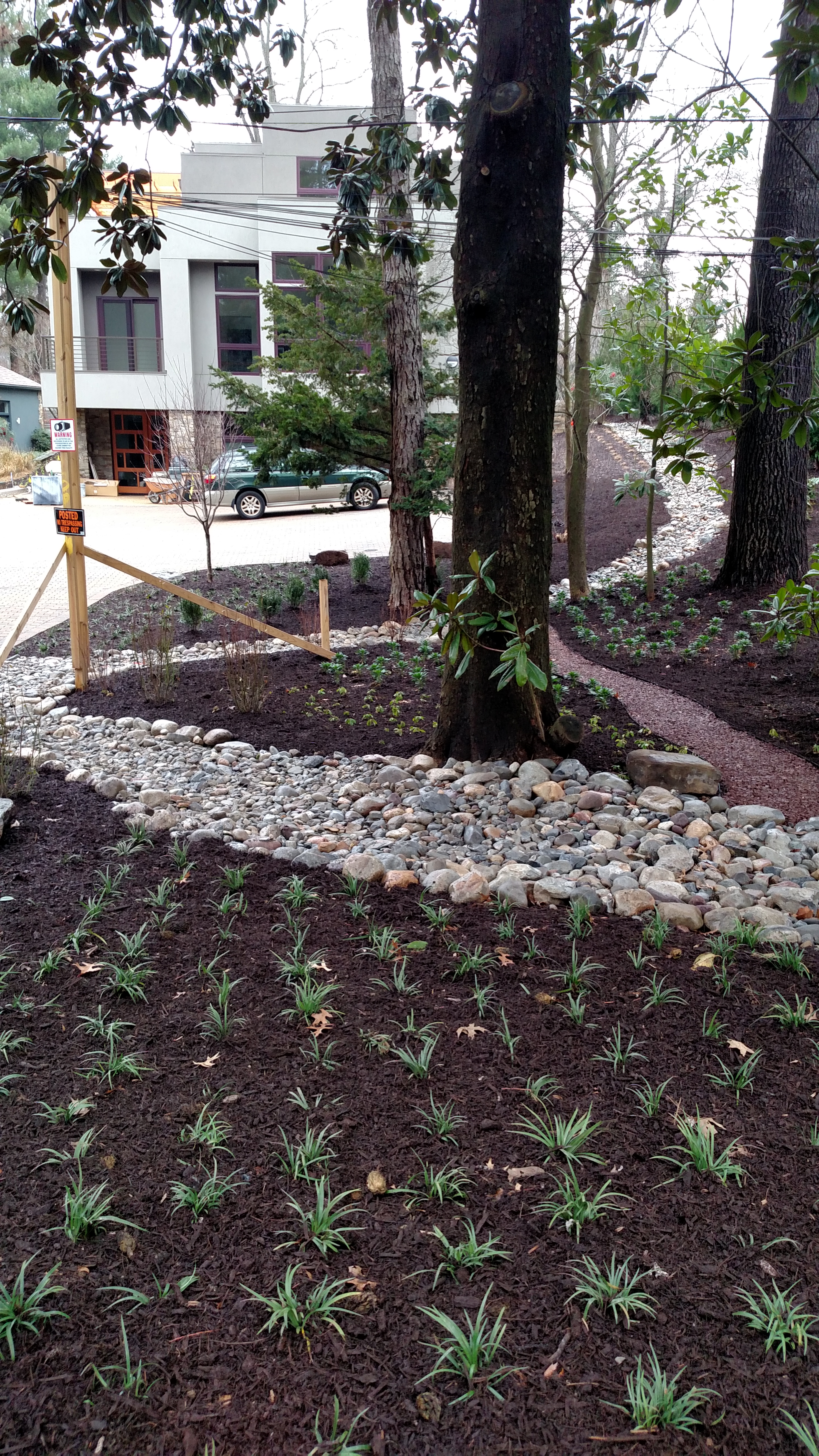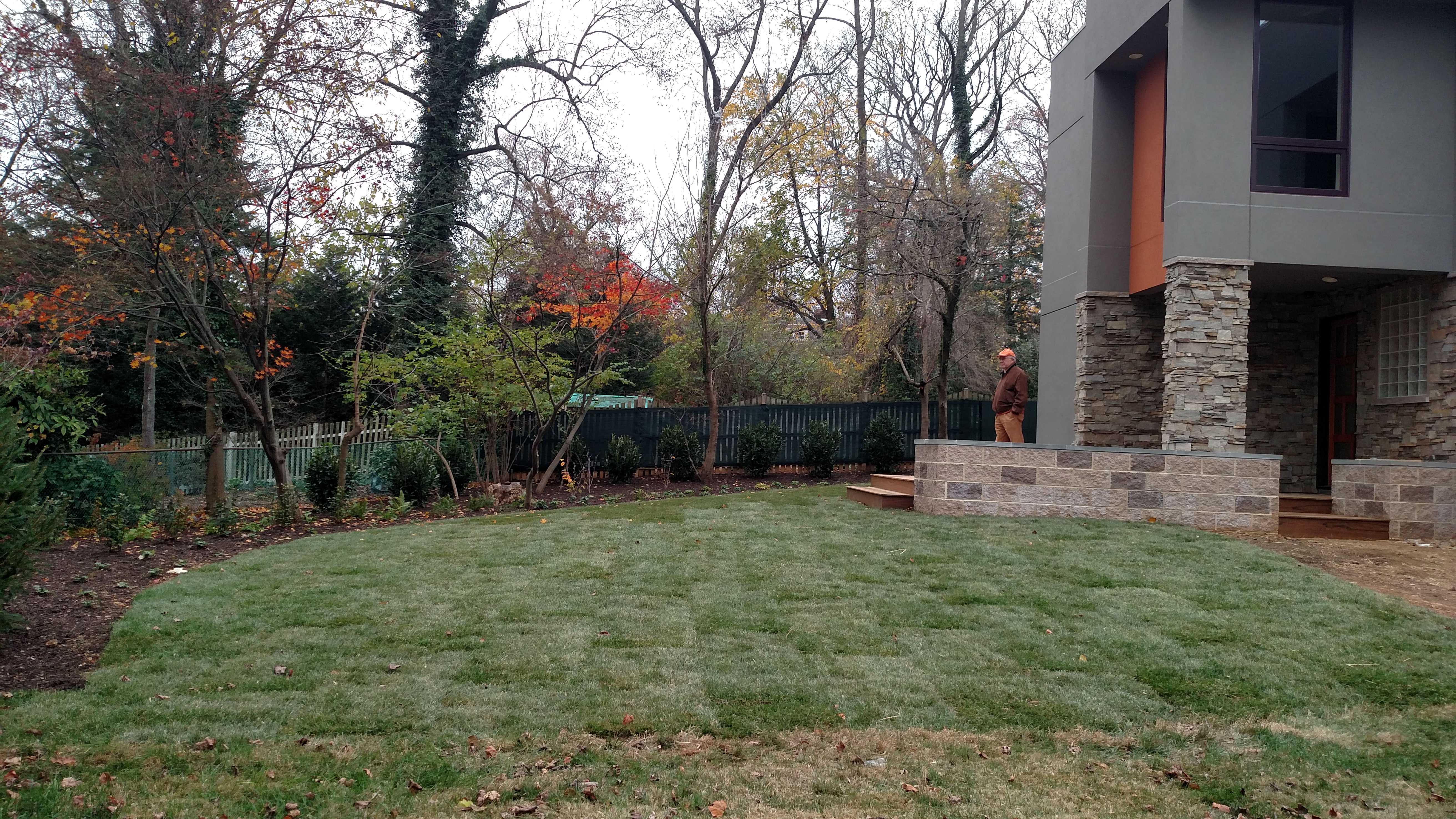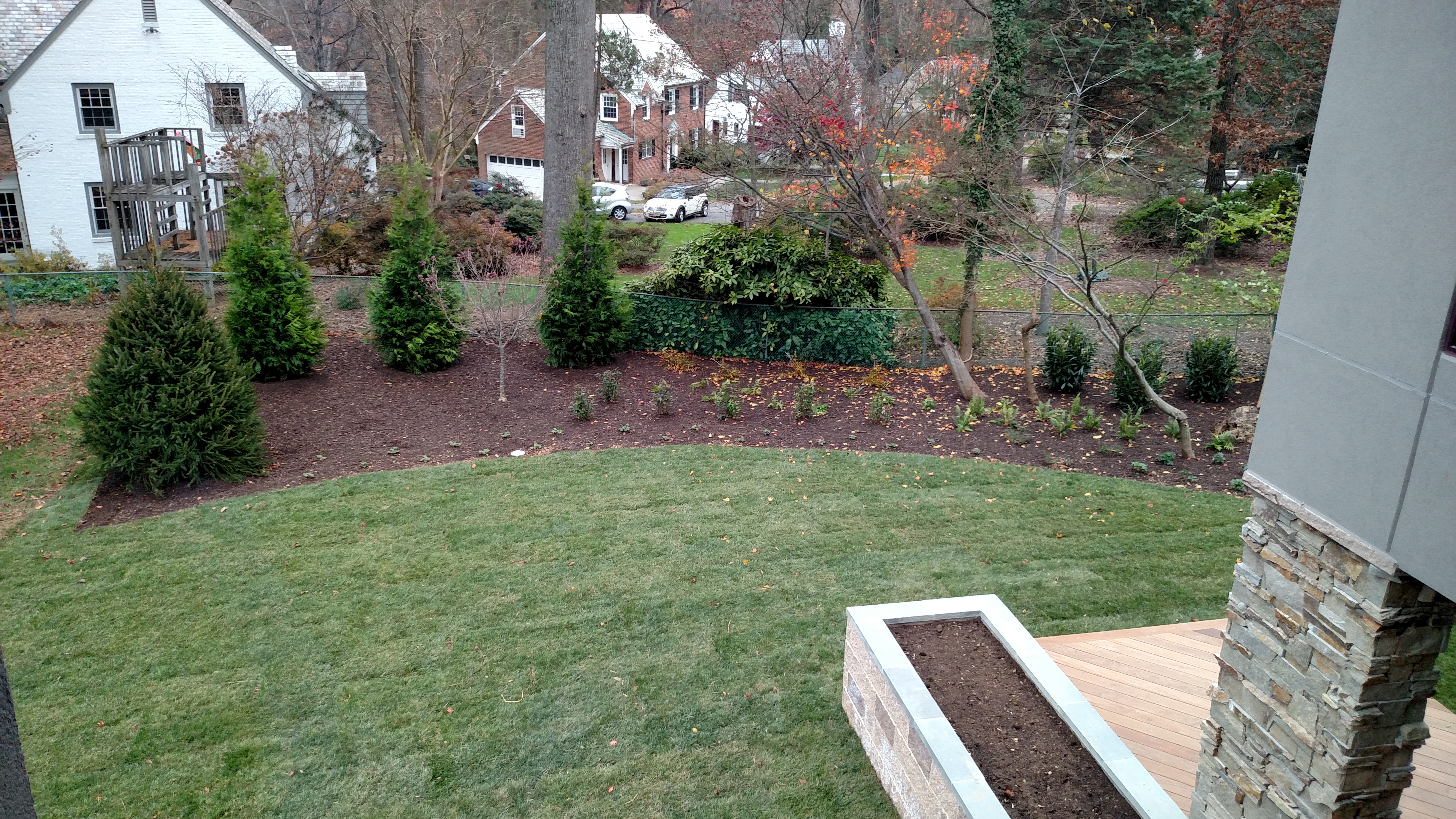 Rear plantings are going in with landscaping plan to continue around the entire house, we are fortunate to use local designer Cathy Carr and our installer is Great American Landscapes.