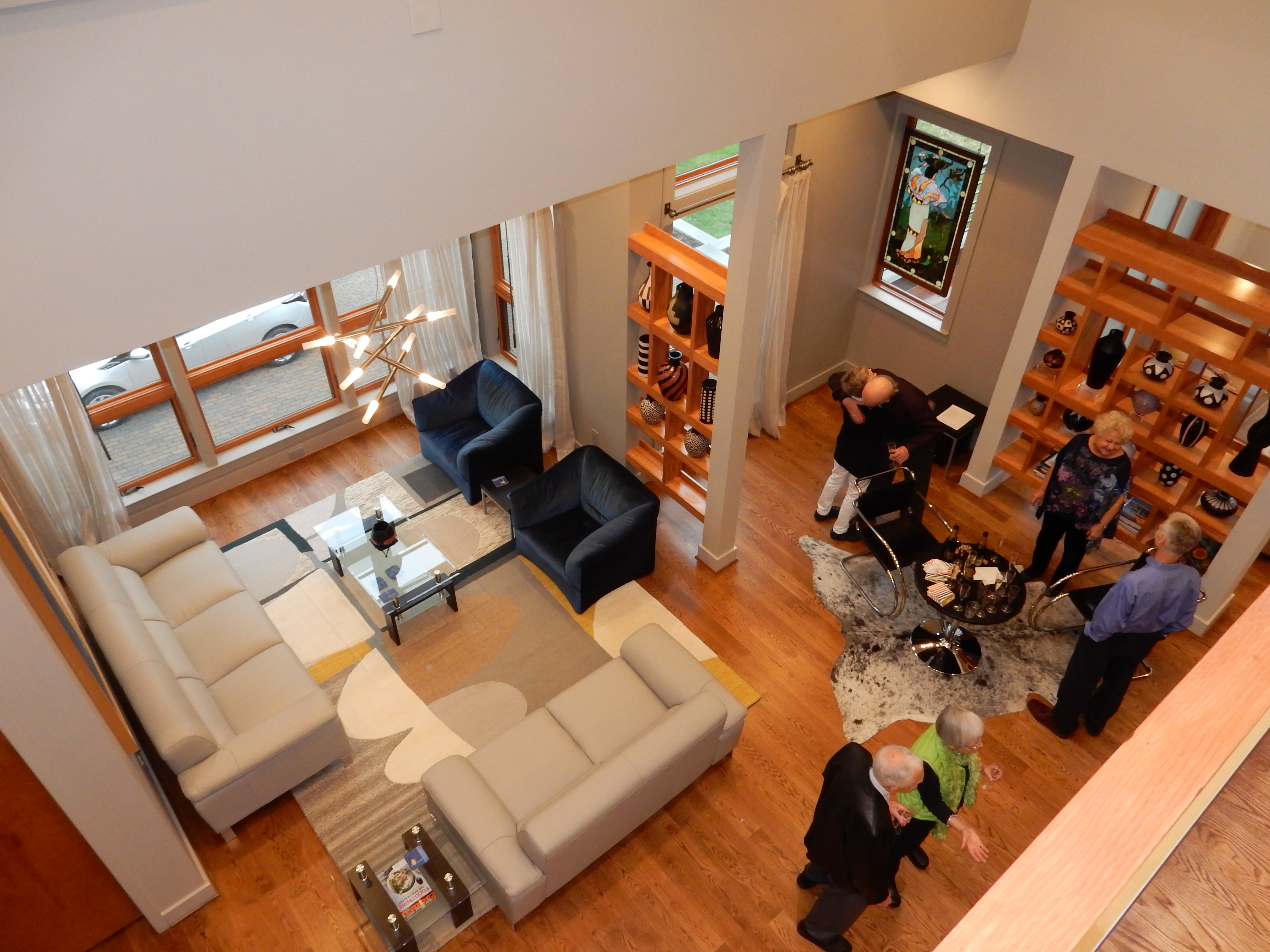 The house is amazing: warm, spacious, fascinating, sculptural, full of views of tree tops and the park. We had a lovely celebration with friends for Lynn’s 65th Birthday and it generated some nice photos. (A big thank you to Ricardo for these great shots.) The house does like to party (and so do the owners)!
