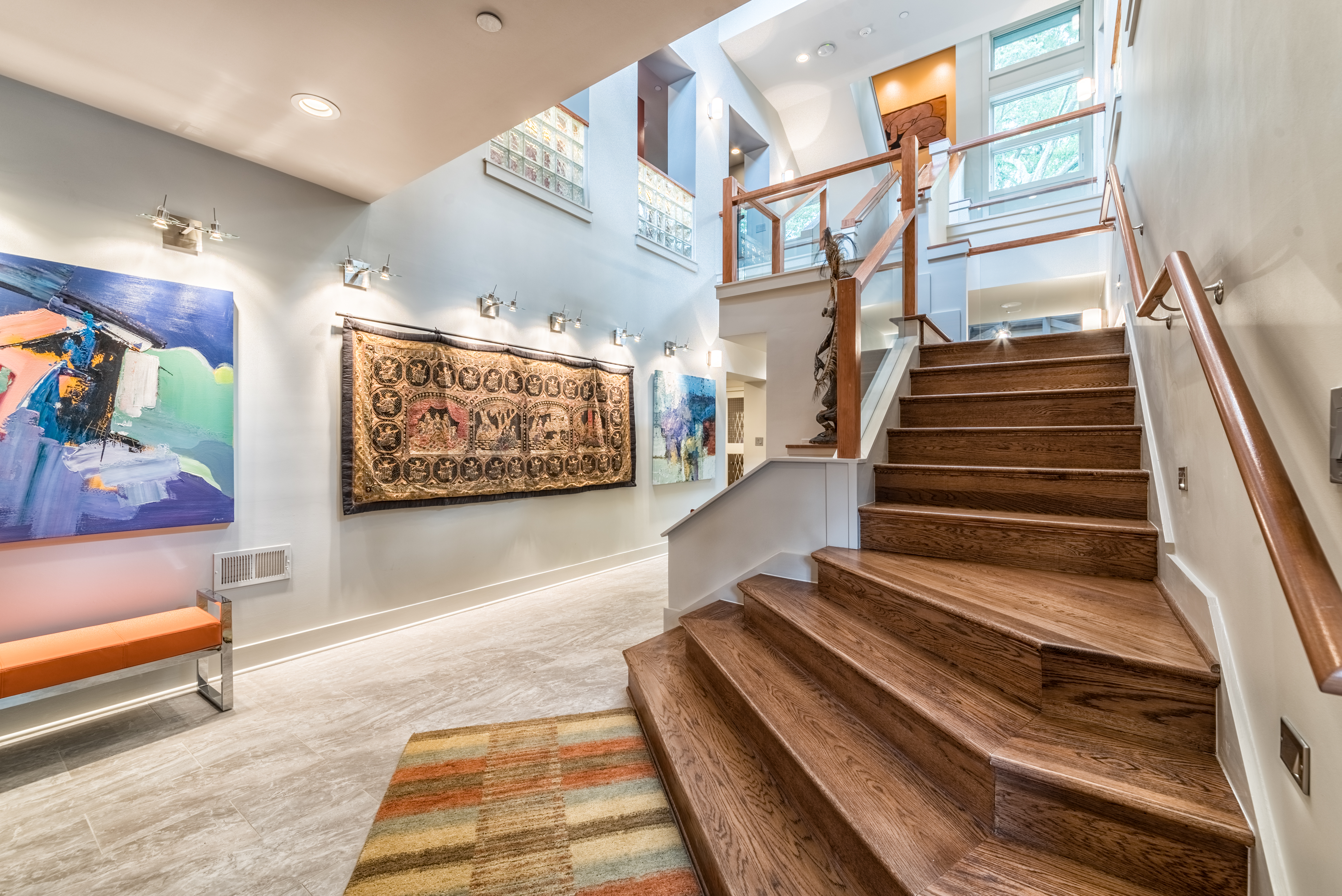 Atrium, walking up main stair, two views above.